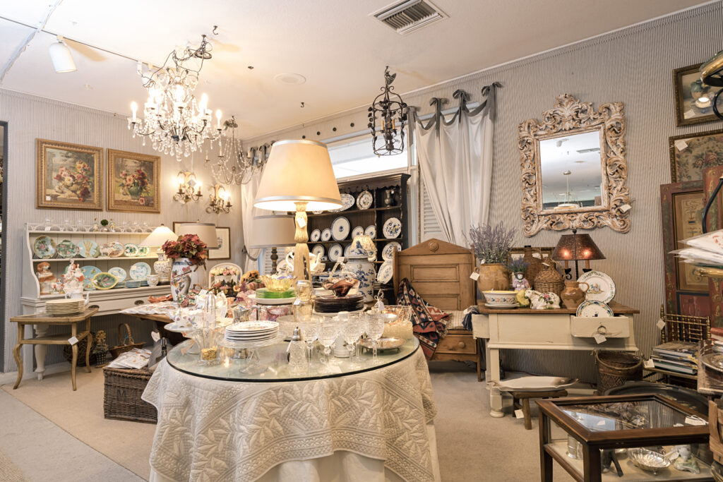 Quality, timeless pieces include furniture, lighting, mirrors, pottery, glassware, and special “finds”.